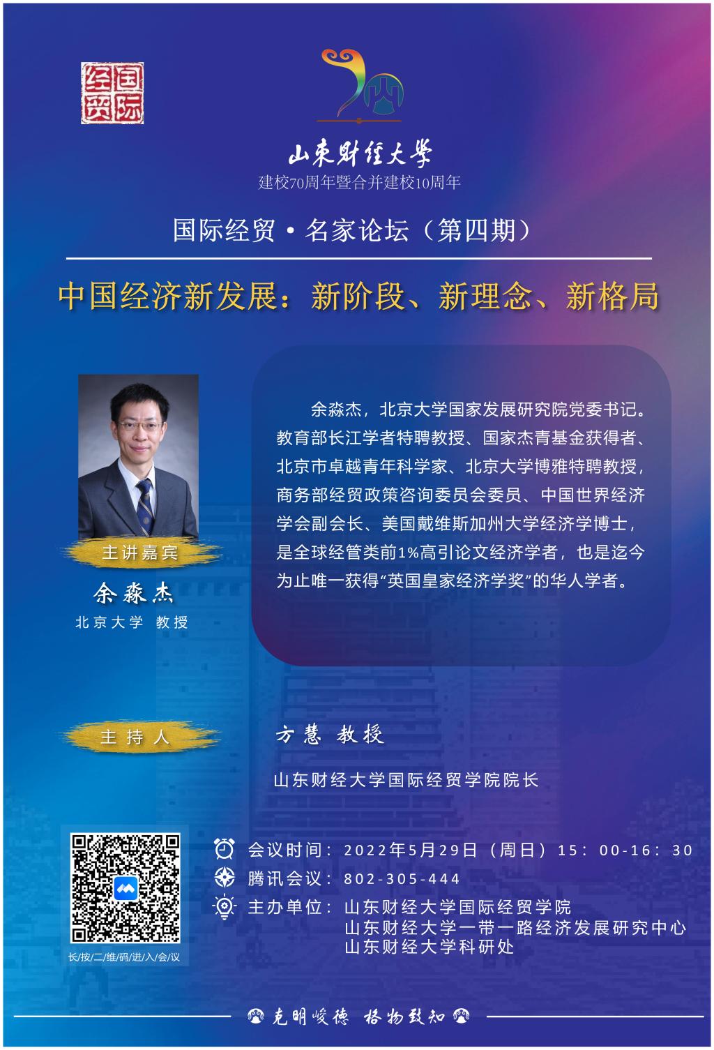 国际经贸·名家论坛(第四期)——建校70周年暨合并建校10周年系列讲座
