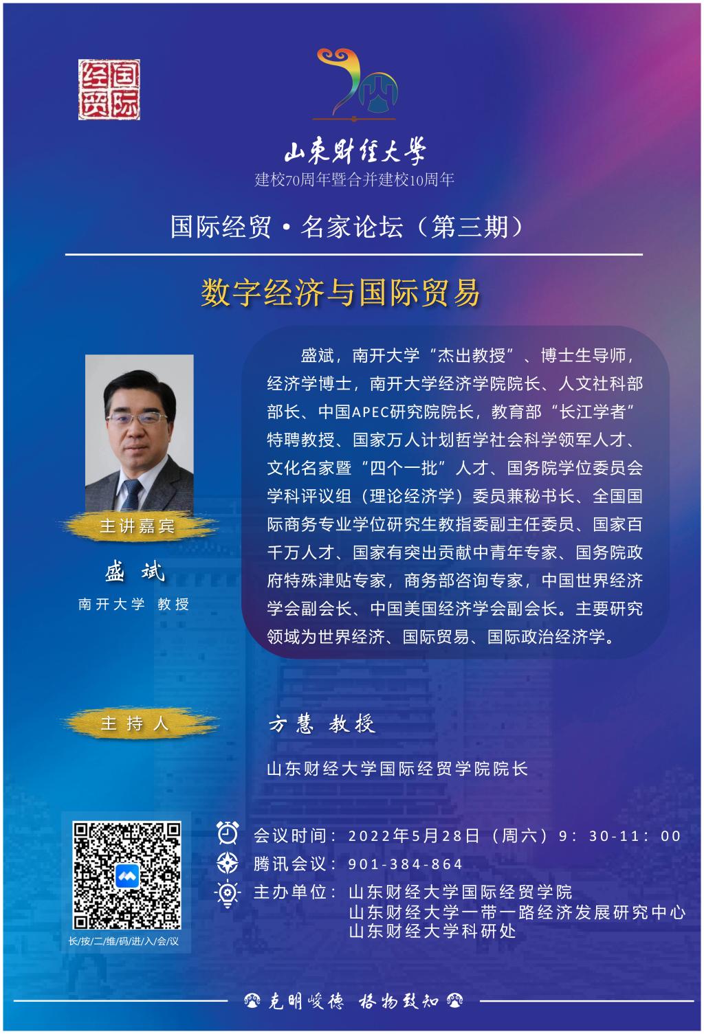 国际经贸·名家论坛(第三期)——建校70周年暨合并建校10周年系列讲座