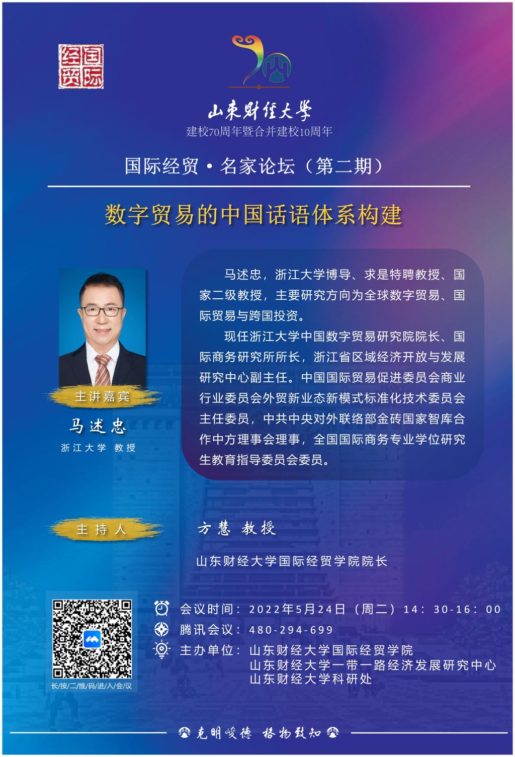 国际经贸·名家论坛(第二期)——建校70周年暨合并建校10周年系列讲座