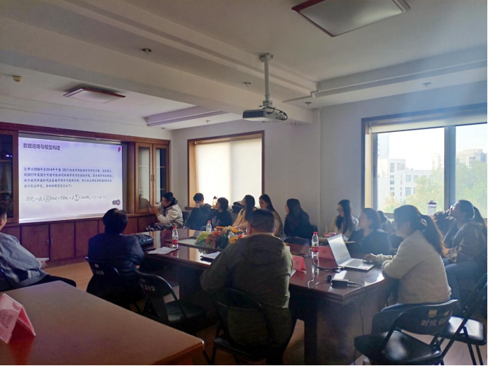 王彬老师、解欢品博士就“数字技术强化价值链稳定性的研究:基于中国31个省区市的经验证据”与“中欧班列对城市全要素生产率的影响——基于 285 个地级市面板数据的检验”两篇论文分别进行了分享。学术系主任王明益教授,以及李启航教授、李红副教授分别对主讲人的论文进行了精彩的点评。