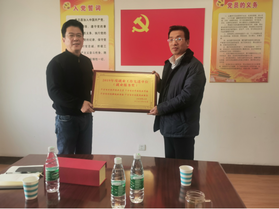 郝秀峰副书记代表学院领取了2019年度就业工作先进单位奖牌,滕晖老师领取了2019年度就业先进个人奖杯。