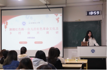 “脚踏红色路——台儿庄红色革命文化及乡村振兴调研”调研团队分享了以台儿庄红色革命文化为主题的调研活动,从三个方面生动讲述了本次调研的丰厚成果,同时细致地解说了团队的调研经验,以小组线上线下调研中遇到的实际问题为切入点,总结了调研中应当注意的事项,并为即将展开调研的同学们提供了丰富的经验和建议。