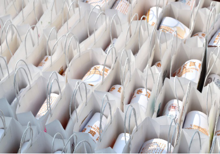 在迎新现场,我院高年级学生准备的手绘礼袋成为了一道靓丽风景线。在迎新前的准备期间,学院高年级学生们在一个个礼袋上为学弟学妹们手绘了图文并茂的新生寄语,其中既有可爱俏皮的卡通形象,也有发自肺腑的感人祝福。四百多个手绘礼袋各不相同,各承心意,收获了众多新生们的喜爱和感激。