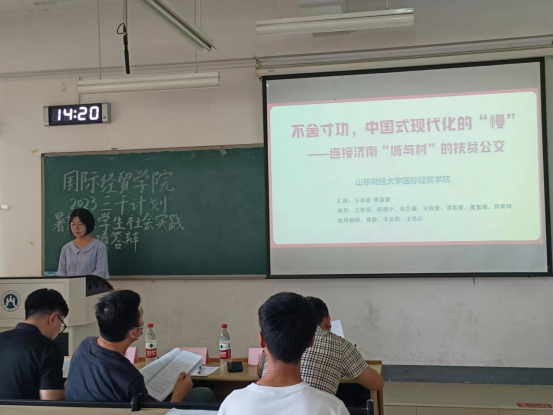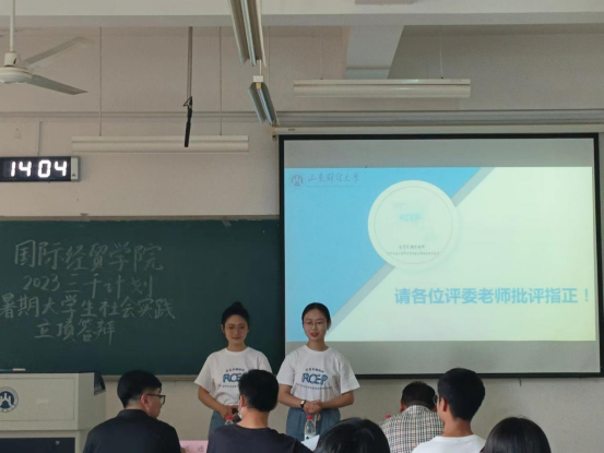 评委刘伟全、王涛、刘璐、戚建薇、邹通、房甄老师出席指导,社会实践各队队长及部分队员参与了本次答辩。