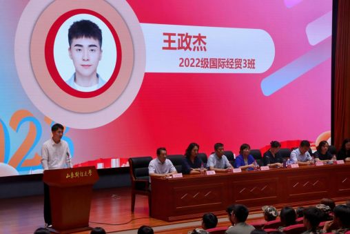 2022级在校生代表王政杰通过讲述自身的经历,鼓励新生同学提前确定目标,不断提升个人的综合素质,在报国强国的接续奋斗中把握时代机遇。2023级新生代表赵芮仪同学表示,作为一名新财大国贸人,要秉持“克明俊德,格物致知”的校训,厚植家国情怀,涵养进取品格,勇敢肩负起时代赋予的重任,书写新时代中国青年的奋斗青春。