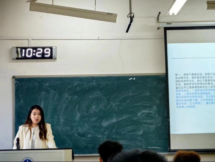 国际经济与贸易专业,因此对我校和学院的教学管理特色和学生培养安排都非常了解。史博文在本次汇报讲座中,主要基于自己的本科学习经历,为学弟学妹们分享了自己的经验和教训。着重强调了找到自己的方向和掌握自己的节奏的重要性,并鼓励大家积极参与校园活动。