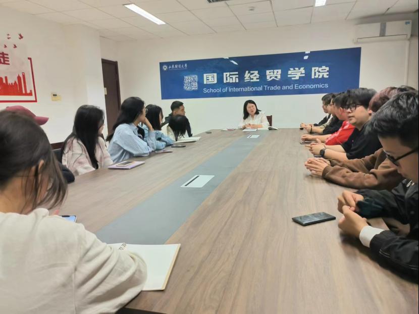 会上,张翠燕老师根据会前收集的同学问题,有针对性地回答了考研留学、求职招聘、学习规划、工作生活等问题,激励同学们进一步开拓视野,建立国际化思维,深入体会各经济体间的经济合作动向,提高自身专业能力,努力成为新时代国际化先进人才。研讨会中,师生轻松漫谈,不仅交流了专业学习知识,也趣谈了青春校园与生活乐闻,引出笑声连连。