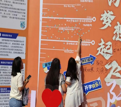 、学科建设、学团工作、毕业生去向等内容,帮助新生进一步了解学院情况,同时为新生准备了“摸高挑战”、“心愿箱”等趣味活动,寓意学子们怀揣梦想奋力起跳,前程似锦。
