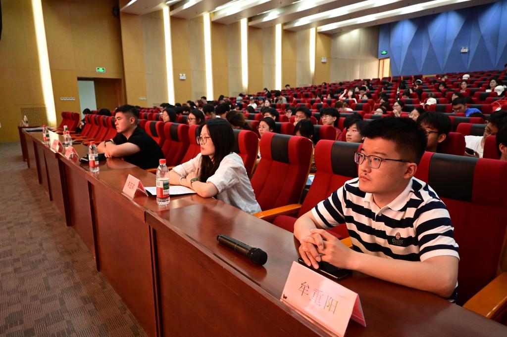 2025届毕业生李明慧、李佳蔚、马东和李乐彤分考研和留学的经验。学院辅导员李亚莉、牟重阳、张伟峰和大一大二大三部分学生代表参加了本次分享会。