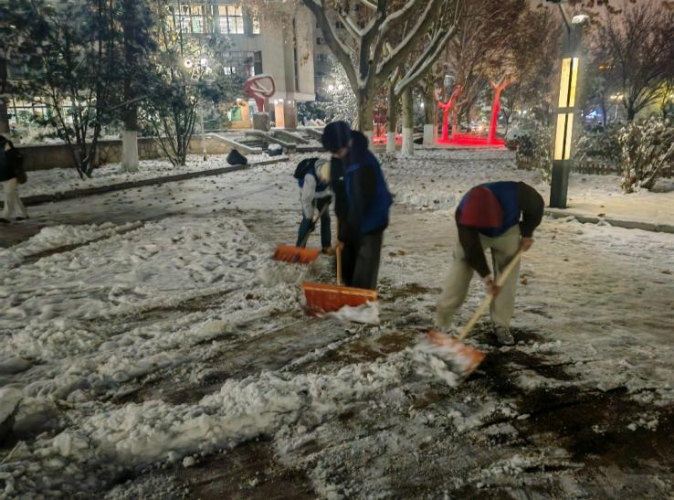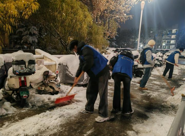 12月12日,济南初雪翩然而至,强降雪导致校园道路积雪结冰,给师生出行带来安全隐患。为切实保障校园道路安全畅通,弘扬志愿服务精神,12月13日,学院在章丘和舜耕两个校区同步开展扫雪除冰志愿服务活动,学院学生党员、学生干部及青年志愿者积极响应号召,不畏严寒,以青春热力消融冰雪,为师生出行筑牢安全防线。