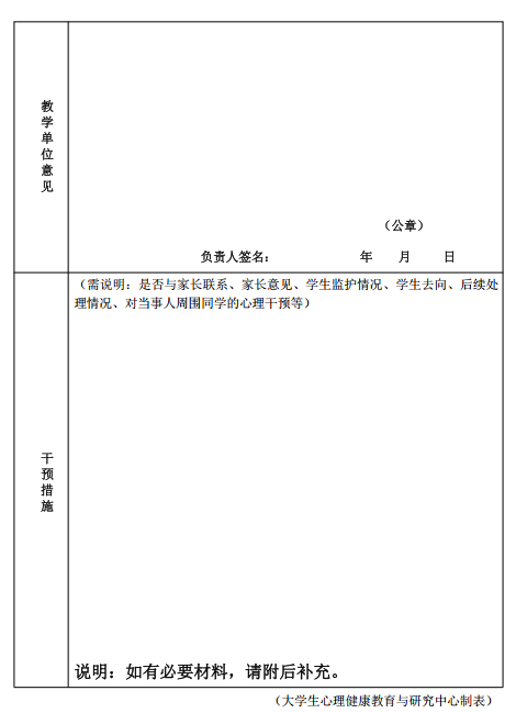 (三)当事学生休学后申请复学时,须向学校提供由权威机构出具的心理康复证明。所在教学单位应密切关注,妥善安排其生活,建立良好的心理支持系统;所在班级心理委员、宿舍朋辈志愿者应密切关注其心理变化情况;学生家长要做好学生用药、复诊的督促工作;大学生心理健康教育与研究中心可提供心理咨询服务,为学生大学生活保驾护航。