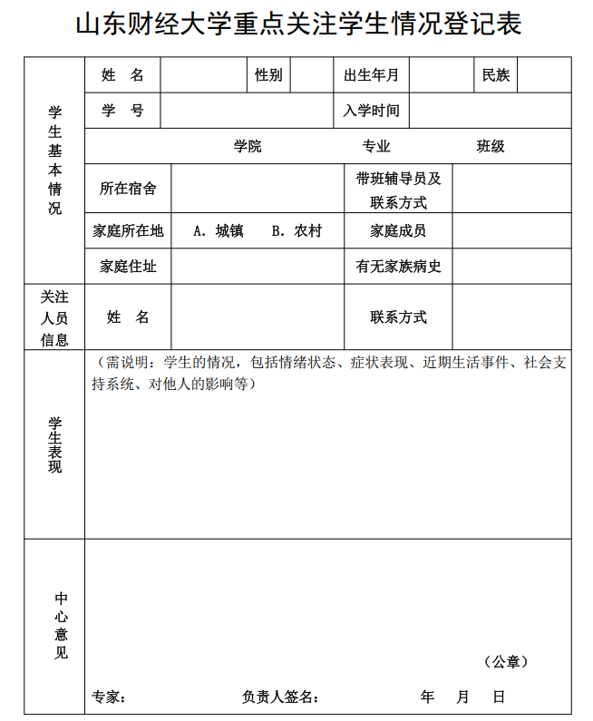 (四)建立学生心理危机预警库:对于存在严重心理障碍、心理疾病或有自杀倾向的学生,建立专门的心理危机预警库,记录学生的基本信息、心理评估结果、干预措施及效果等内容(详见附件),并进行定期跟踪和动态管理,确保对高危学生的重点关注和有效干预。