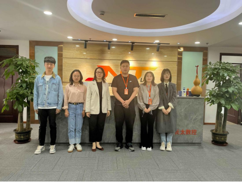 王斐斐一行首先参观了长太数控科技有限公司的产品展览和外贸工作室,随后召开了校企座谈会。