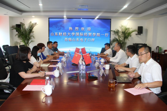 赴山东能源集团山东省电子口岸有限公司开展交流研讨。学院党委书记崔东峰、副院长刘伟全、国际商务系副主任王涛、贸易经济系副主任陶攀、跨境电子商务系主任刘宁、就业办主任李瑞雪,山东省电子口岸有限公司党委书记、董事长岳智飞、运营管理部部长周舰、市场部部长李磊等共同参加了活动。