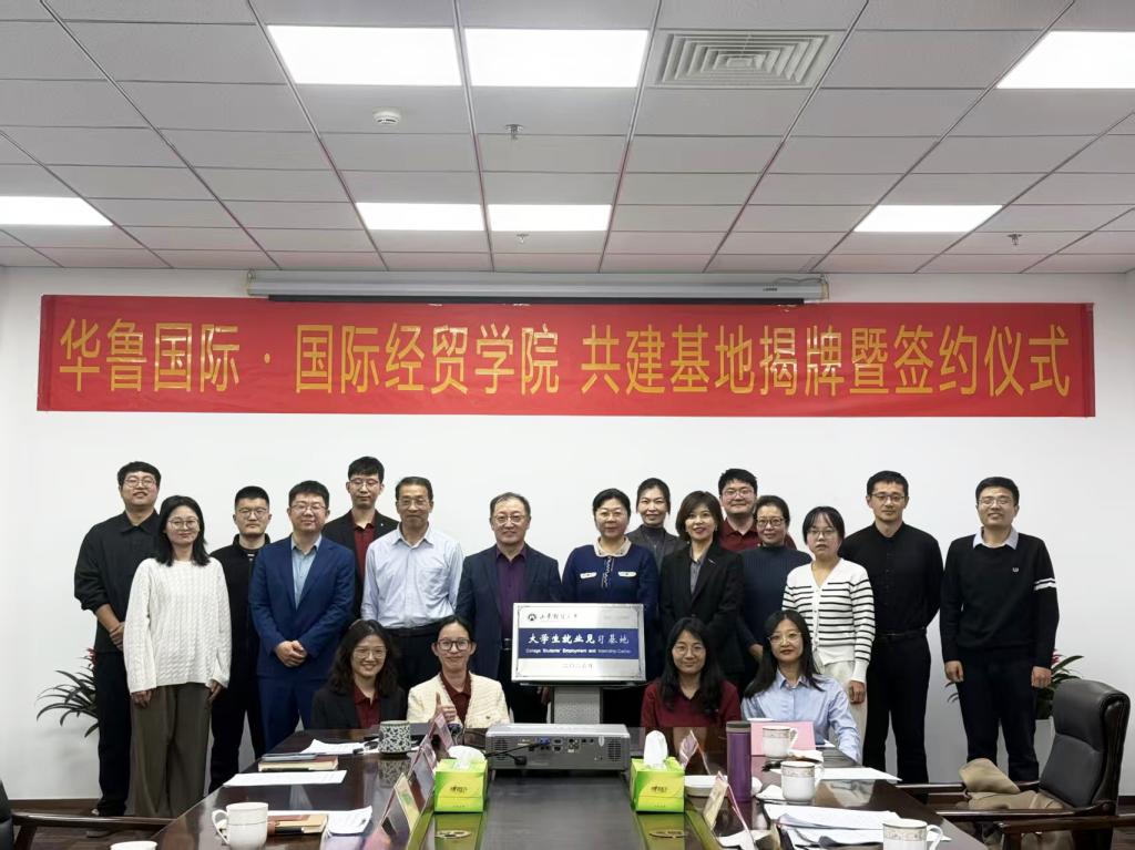 的发展历程,详细阐述了学院在学科建设、专业特色、人才培养、科学研究、国际交流及社会服务等方面的显著成果。她指出,此次与山东华鲁国际贸易有限公司的合作,是学院深化实践教学改革、打通“校园到职场”衔接通道的关键举措。她希望未来在共建实践教学体系、搭建双向交流平台、构建就业联动机制、达成“产学研用”合作等方面展开深入合作。