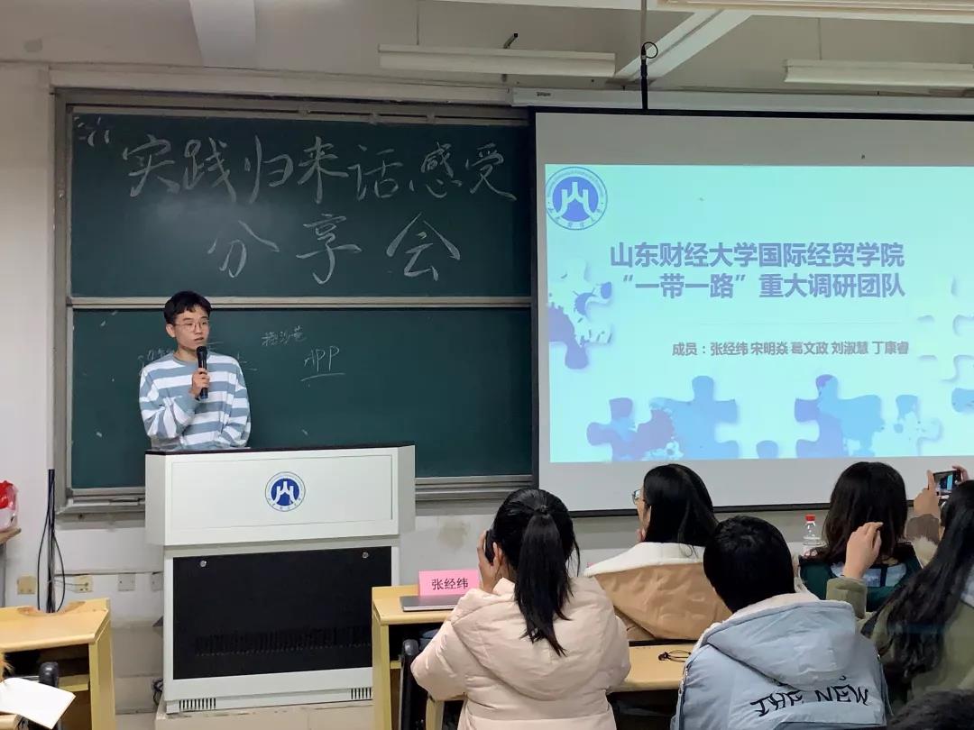 分享会上,三个优秀实践团队进行了成果展示和经验分享,这三个团队的调研项目分别为:遵义红色革命调研团队、泉城义工社团支教调研团队、“一带一路”倡议下新型物流模式应用及创新研究—基于我国新旧动能转换五所先行城市的调研团队。
