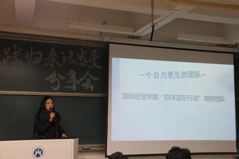 五个团队的团队代表就团队组建、调研课题确立、调研地点选取、实际调研经历、调研报告撰写、调研经验分享等方面进行了详细讲解,展示了自己团队的亮点并与在场同学分享了实践的收获与感悟。更有团队以视频为载体展示调研过程,极大地提高了活动的趣味性和吸引力。
