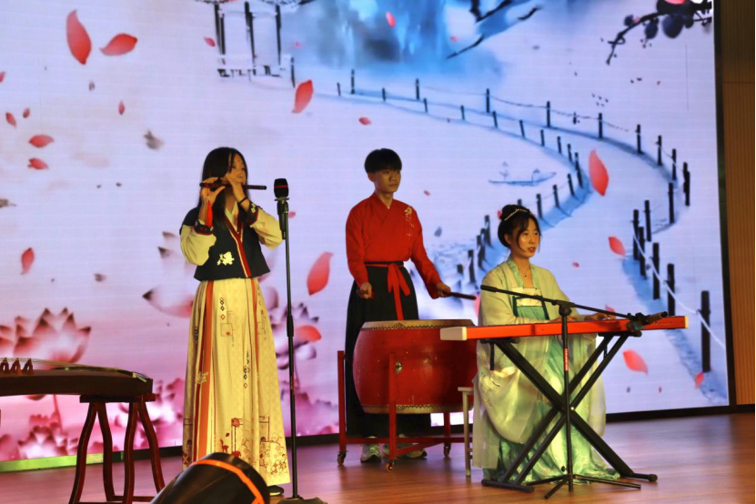 汇演分为“忆往昔峥嵘岁月”、“战疫情风雨同舟”、“恰同学风华正茂”三个篇章。在学院艺术团器乐部带来的开场后,重现五四运动前夕的穿越话剧《你好,五四青年!》、唱响红船精神的歌舞剧《新的天地》、追忆建党百年辉煌的歌曲串烧《峥嵘党史追梦人》将观众们带回到了往昔峥嵘岁月,回顾了党的光辉历程。