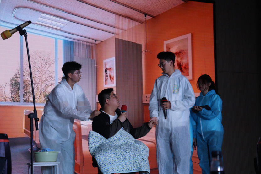 第二篇章“战疫情风雨同舟”中,舞台剧《凛冬散尽 旭日东升》与合唱节目《你的答案》展示出了疫情期间全国上下团结一致、众志成城,风雨同舟的大爱深情,致敬了站在一线不畏生死的白衣天使。