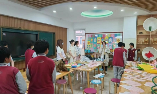 擅长美术的志愿者组成了手工制作团队,与黄金谷学校的同学们共同完成大型手工制作,并将于6月下旬参加济南市中小学(班级)文化艺术节。同时,由22级金昊翔同学带领的舞蹈团队也正在紧锣密鼓地为黄金谷初中部教学排练。