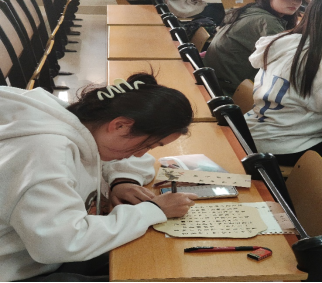 现场同学们运笔沉稳,屏息凝神。下笔,起笔,顿笔,提笔,挥洒自如,尽显笔锋。一张一弛,一抑一扬,铅墨丝丝浸染纸张,字形盈盈尽显优雅;一笔一画,一字一句,书法之韵,皆为心声。笔尖跳动间,墨香四溢,一幅幅书法作品跃然纸上!