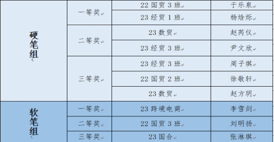 经过对参赛选手的书法功底、创意设计和整体表现的评比。最终,在此次活动中评选出以下获奖同学: