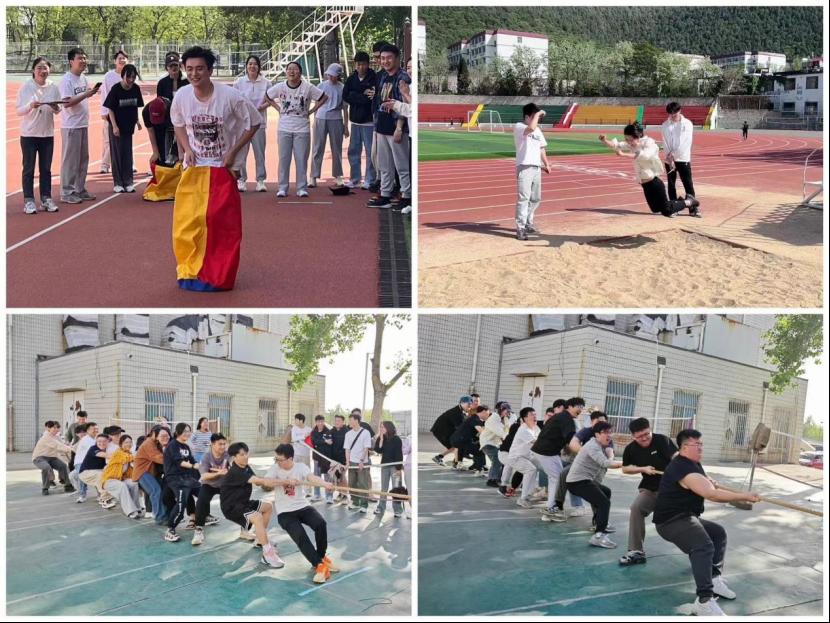 在舜耕校区体育场举办“快乐运动 向上国贸”研究生趣味运动会。党委副书记王斐斐、研究生辅导员李瑞雪与110余名研究生共同参加此次活动。
