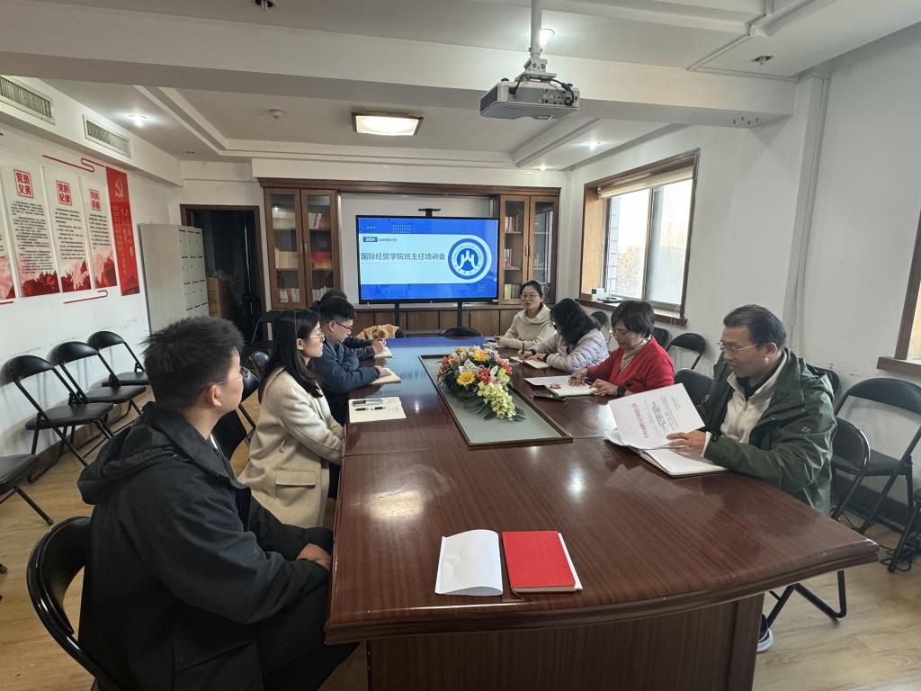 在舜耕校区召开新聘班主任培训会。学院党委书记崔东峰,党委副书记郝秀峰、王斐斐,辅导员李亚莉、张伟峰以及全体新聘班主任参加会议,会议由李亚莉主持。