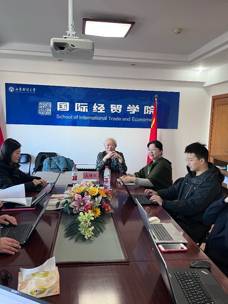 研讨中,王晓红研究员对本院《数字贸易》教材的编写工作给予充分肯定,在本院教师介绍教材的主要内容后,王晓红研究员详细介绍了《中国服务贸易发展报告》的编写过程,并结合编写经验,对数字贸易的概念、如何区分数字贸易的分类给出了专业建议。王晓红研究员还指出了数字贸易横跨货物贸易与服务贸易的“双跨”特点,并建议教材区分数字贸易的核心部分与外围部分。老师们就数字服务贸易与数字产品贸易的数据如何区分、如何搜集等问题与王晓红研究员进行了充分探讨。