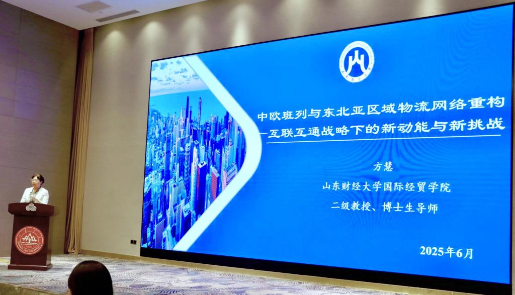 分论坛上,方慧院长以“中欧班列与东北亚区域物流网络重构”为题,系统分析了东北亚物流网络构建现状,阐释了中欧班列在推动区域物流网络重构中的新动能,并针对当前面临的挑战提出对策建议。她的发言为促进东北亚经贸互联互通提供了重要学术参考,引发与会专家热烈讨论。