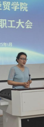 在舜耕校区第二阶梯教室召开学期末全体教职工大会,学院领导班子成员及全体教职工参会,会议由院长方慧主持。