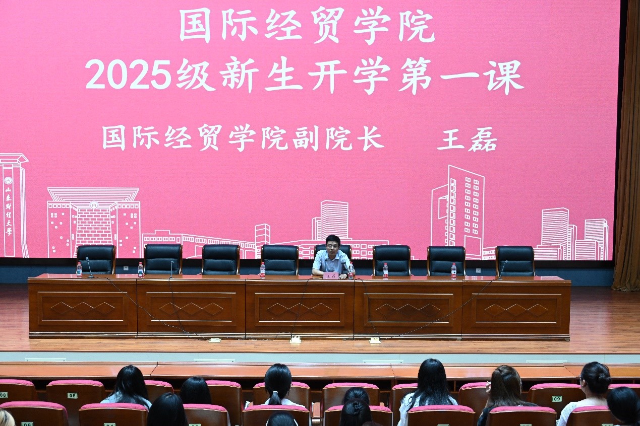 针对专业学习,王磊聚焦学科特色,详细介绍了学院近年来在《区域全面经济伙伴关系协定》(RCEP)政策研究、跨境电商创新实践等领域取得的丰硕成果。他结合新时代经贸领域对高素质人才的培养要求,向新生们提出三点建议:第一,筑牢专业基础能力,打造“硬实力”根基。他强调要通过学习国际贸易实务、经济学原理等核心课程形成系统化知识框架,同时,拓宽学术视野,了解前沿动态,为长远发展筑牢根基;第二,锤炼学习适应能力,保持“成长力”优势。在学习中只有掌握高效的学习方法与快速适应的能力,才能跟上专业的发展,要制定不同阶段的学习计划,根据行业变化调整学习重点;第三,提升情商与心理素养,塑造“综合力”形象。经贸人才不仅要懂专业,还要会沟通、能抗压,因此,他建议新生多参与社会实践与校园活动,勇于接受学业与生活中的挑战,面对挫折保持积极向上的心态,在与人交往中提升沟通能力,在实践锻炼中涵养综合素养。