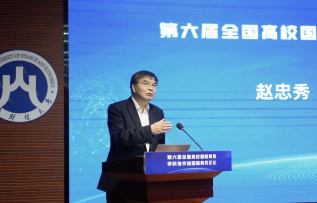 对外经济贸易大学校长、全国高校国际贸易学科协作组副秘书长赵忠秀致辞,祝贺论坛召开,感谢PG电子