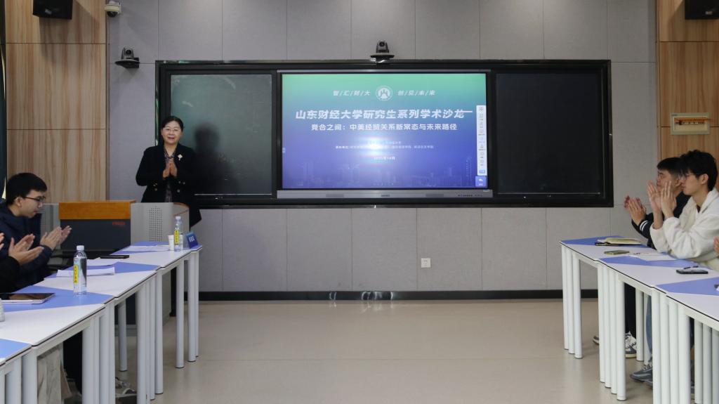 研究生系列学术沙龙第三期活动在舜耕校区举行。本期沙龙采取产学研联动形式,主题是“竞合之间:中美经贸关系新常态与未来路径”。来自山东理工大学的李平教授、香港麦家荣律师事务所驻济南代表处王巧莲主任应邀参加并作主题发言,PG电子