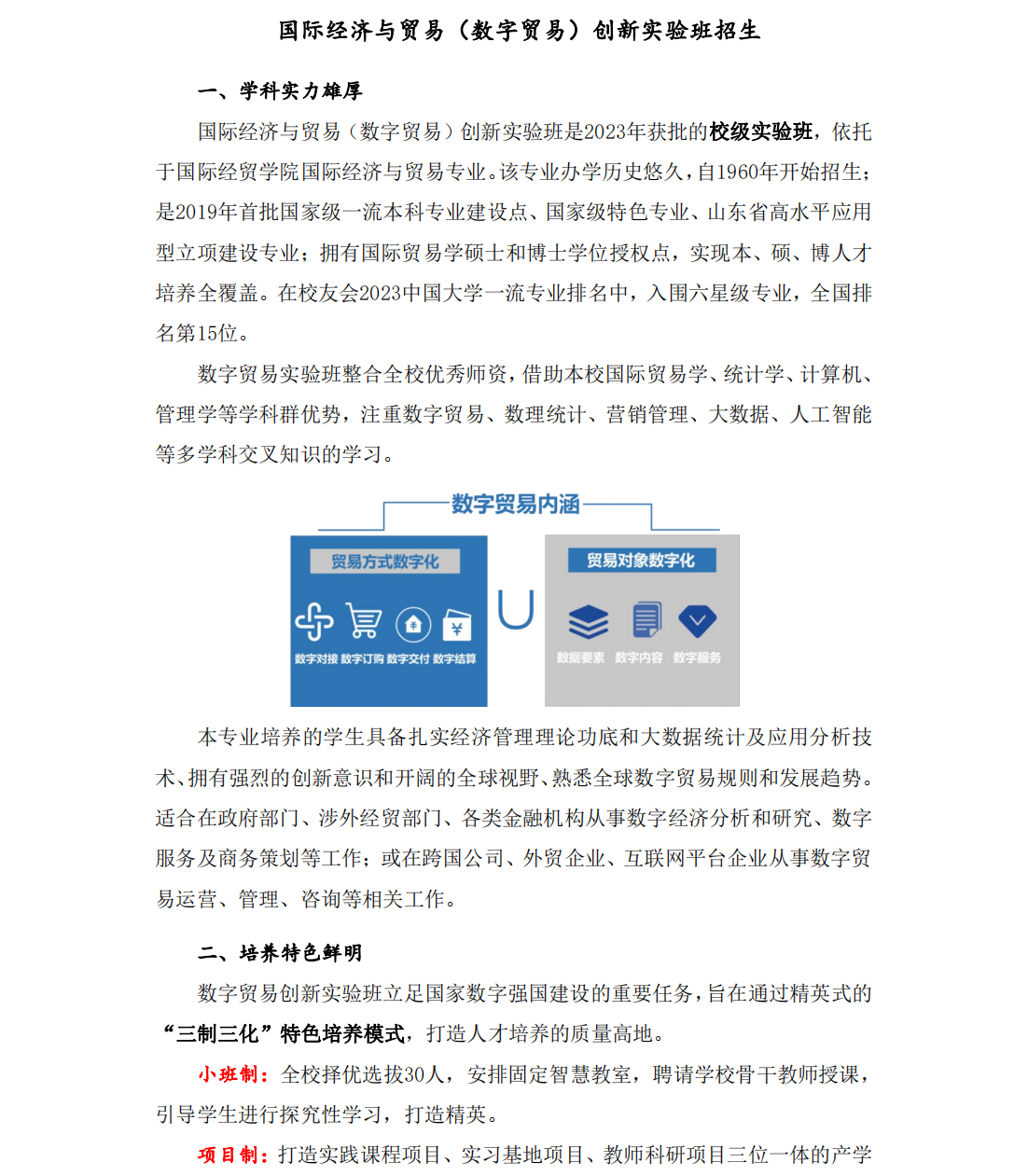 国际经济与贸易(数字贸易)创新实验班招生开启🔛!