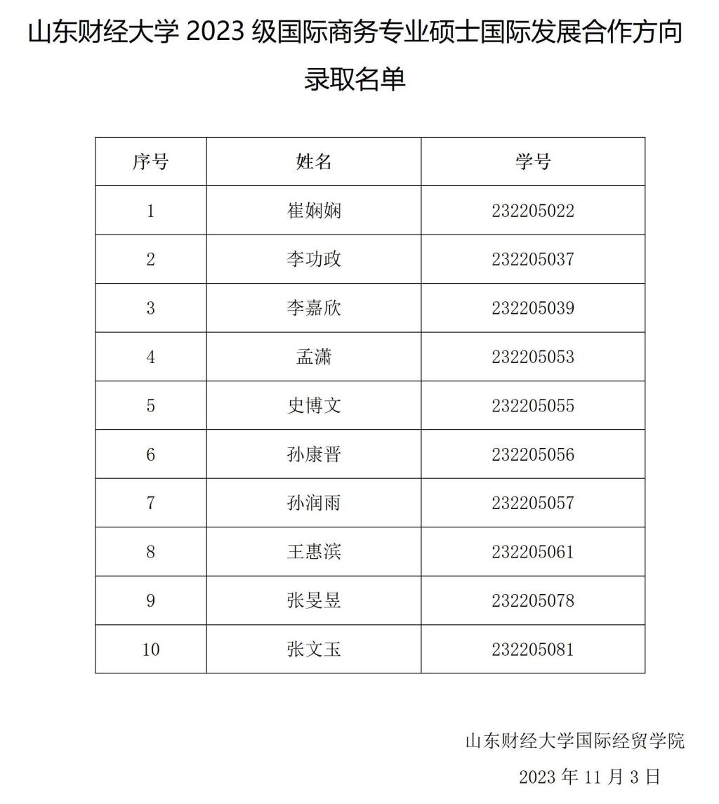 PG电子 2023级国际商务专业硕士国际发展合方向录取名单