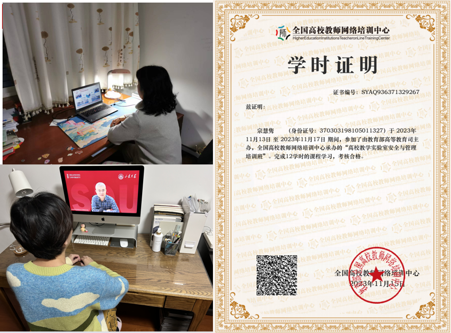 作为主要承担学院实验课教学任务的系部,国际商务系积极组织实验教学一线教师参加培训,全院共有13位教师按时完成培训并通过考核,获得由全国高校教师网络培训中心颁发的学时证明,其中有8位教师来自国际商务系。通过这次培训活动,各位教师更加深刻认识到,实验室安全是维护实验室教学秩序和确保实验人员安全的重要措施。教师在实验教学中一定要牢固树立安全发展理念,严格贯彻“安全第一,预防为主”的方针,时刻树立红线意识。
