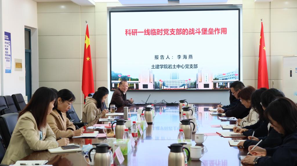 、学院党建工作基本情况、党建工作助推学科发展及未来规划以及发展思路等全方面多角度介绍了学院党建工作的创新举措和成效。全国第一批样板党支部——岩土中心党支部书记李海燕教授从“把握时代脉搏,融入国家发展伟业”“临时党支部成立的时代背景”和“支部建在工地,解决重大工程难题”三个方面介绍了支部党员党性锤炼及科研育人方式等优秀做法,介绍了岩土中心党支部如何坚持党建引领,创新党支部建设模式,发挥科研一线党支部的战斗堡垒作用,把科研根扎泥土、把论文写在祖国大地上,在隧道超前地质预报与地下工程突涌水灾害治理等方向取得了重要突破,为国家重难点工程安全建设保驾护护航。