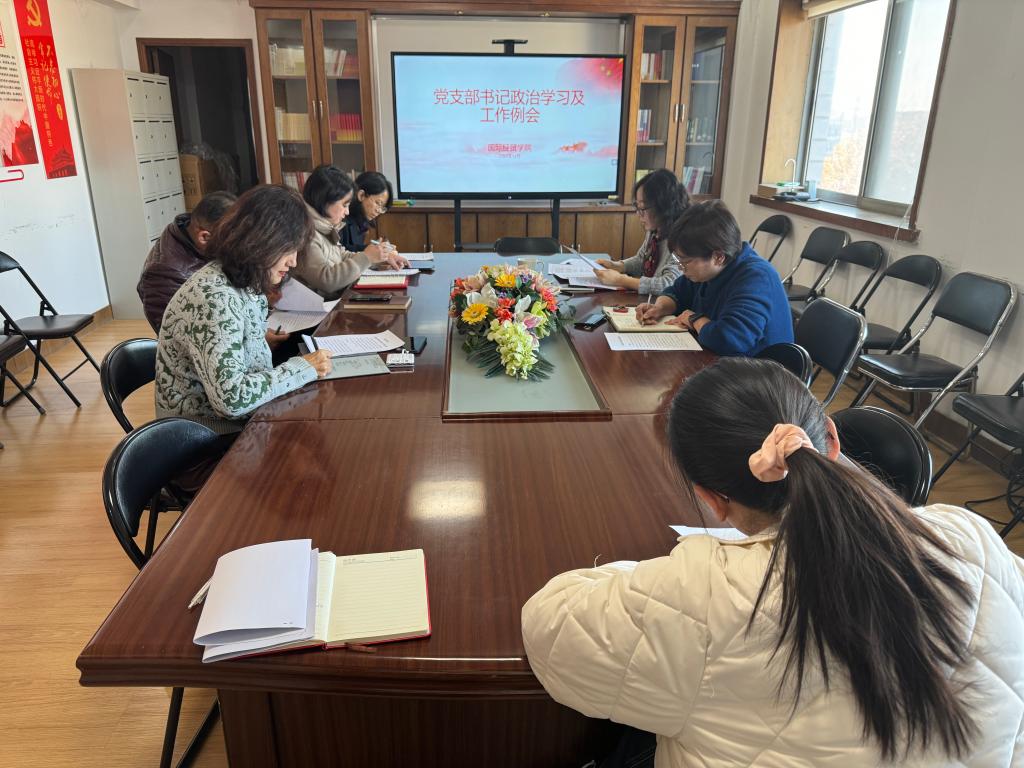 委召开党支部书记政治学习及工作例会,学院党委书记崔东峰,党委副书记王斐斐和全体党支部书记参加会议。