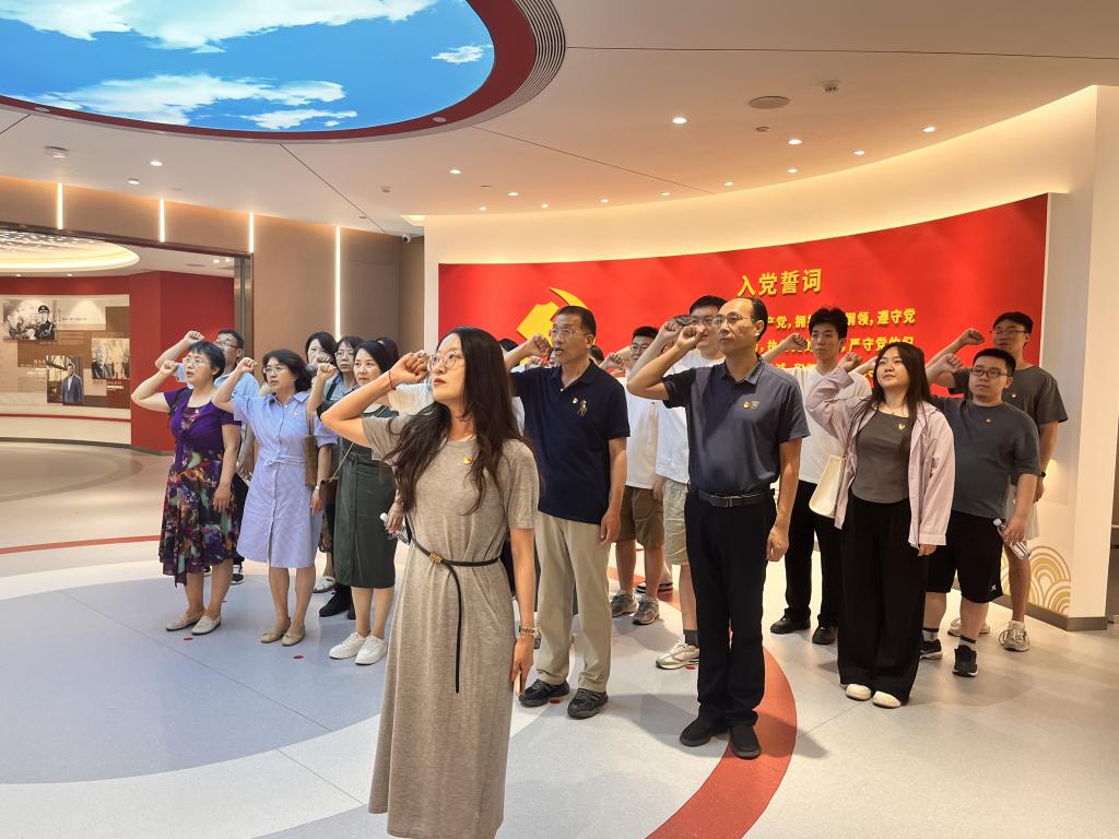 活动最后,党员们在“廉洁之誓—铮铮有声”展厅面对党旗庄严宣誓,重温入党时的初心与承诺。铿锵有力的誓言回荡在展厅,表达了党员们永葆清廉本色、践行使命担当的坚定决心。
