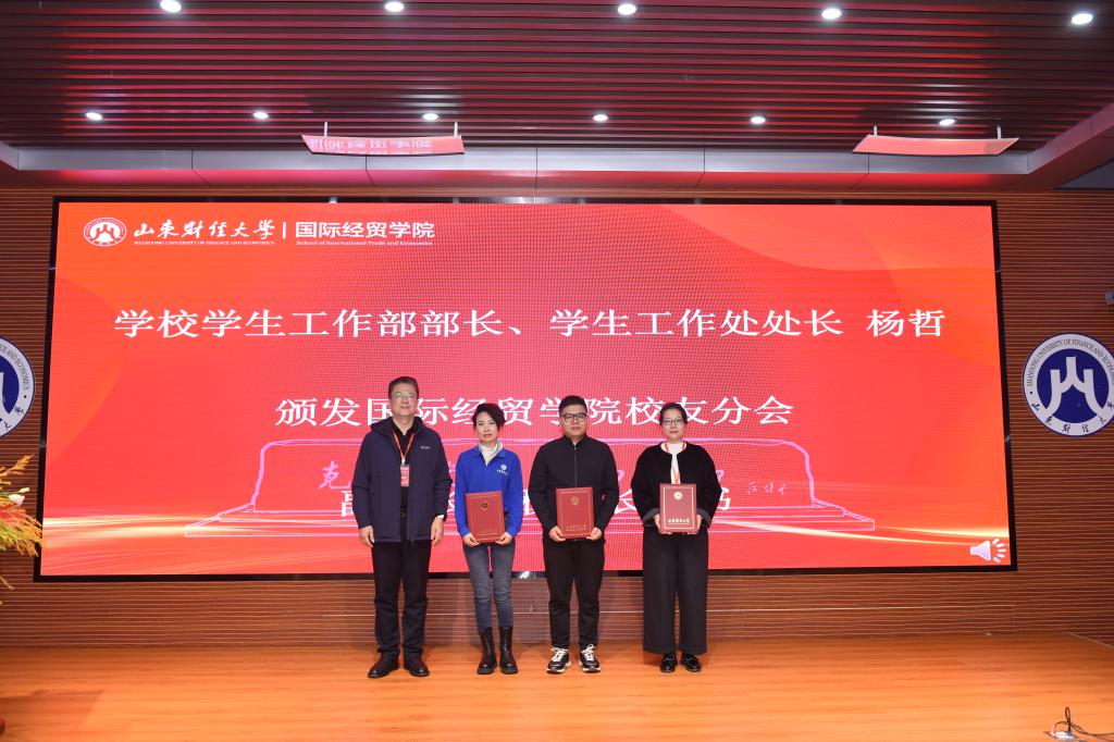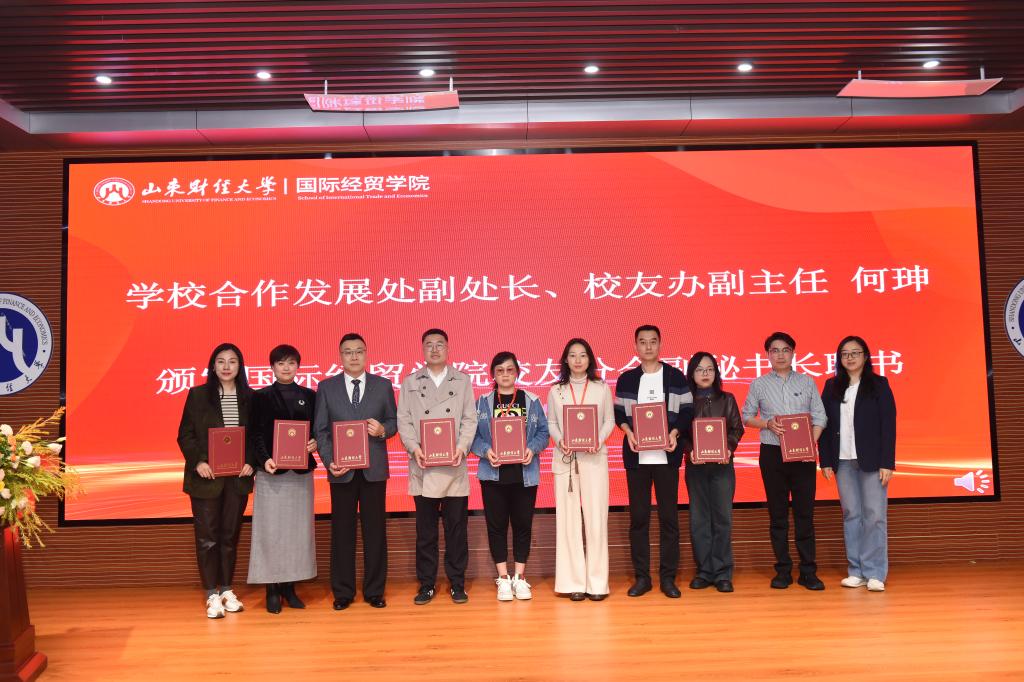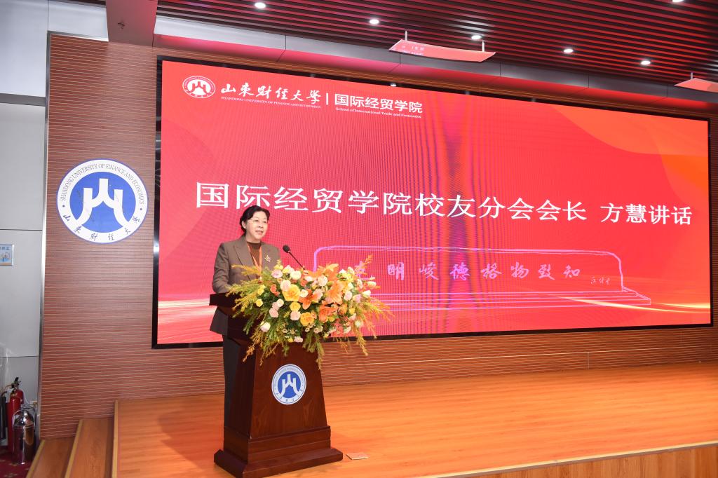 薪火相传六十余载,培养了大批扎根祖国大地、驰骋世界各地的优秀校友,以卓越业绩为母校赢得广泛赞誉。校友是学校最宝贵的财富,更是学校发展最可信赖的力量。分会的成立标志着学校“校院两级、纵横联动”校友工作体系再添新力。她向学院校友分会提出四点期望:一是当好情感联结的“连心桥”,健全联络机制,传承国贸人求真务实、开拓创新的品格;二是当好事业发展的“助推器”,深度融入人才培养、学科建设与产学研合作;三是当好形象展示的“金橱窗”,生动讲述国贸人在“一带一路”等开放前沿的奋斗故事;四是当好服务社会的“立交桥”,充分发挥专业优势,为山东、为全国、为全球开放型经济贡献国贸力量。