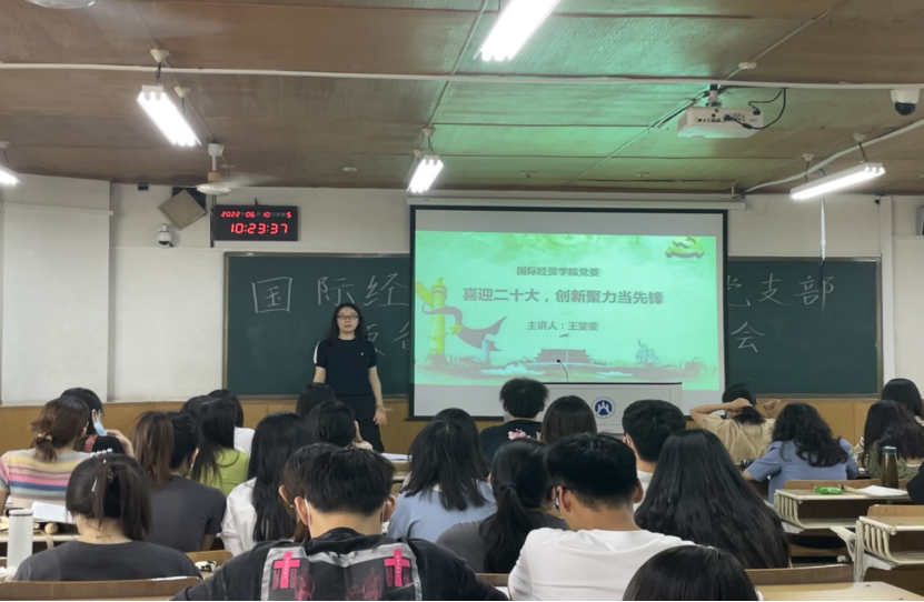 党委副书记王斐斐在舜耕校区6-207为研究生党支部党员讲授了一堂题为“喜迎二十大,创新聚力当先锋”的生动的党课。
