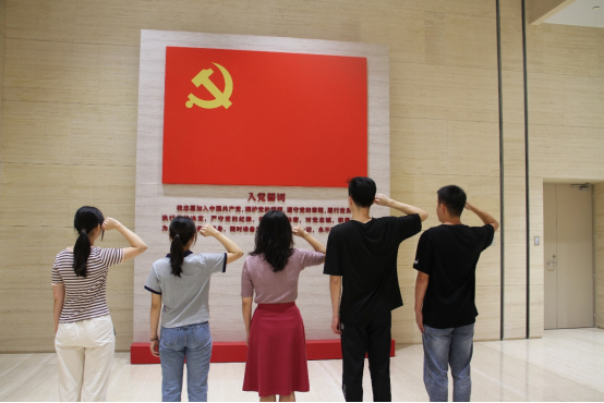 参观完毕后,支部党员们庄重地站在一楼展厅面向党旗,由支部书记李瑞雪带领大家庄严宣誓,重温入党誓词,重忆入党初心。